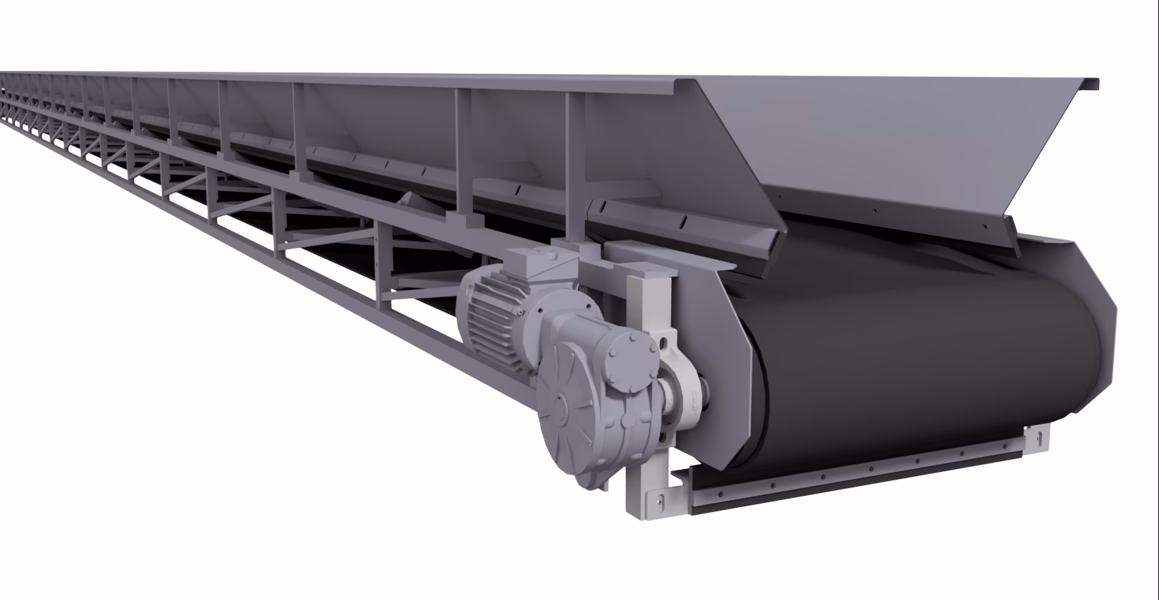 Tilleggsutstyr: Understøttelse, tak, sidevegger, gangveier, nødstoppsystem, hastighetsvakt, og skjevgangsvakt. Transportøren kan leveres innelukket for å være værbeskyttet, samt hindre støvutslipp til omgivelse.