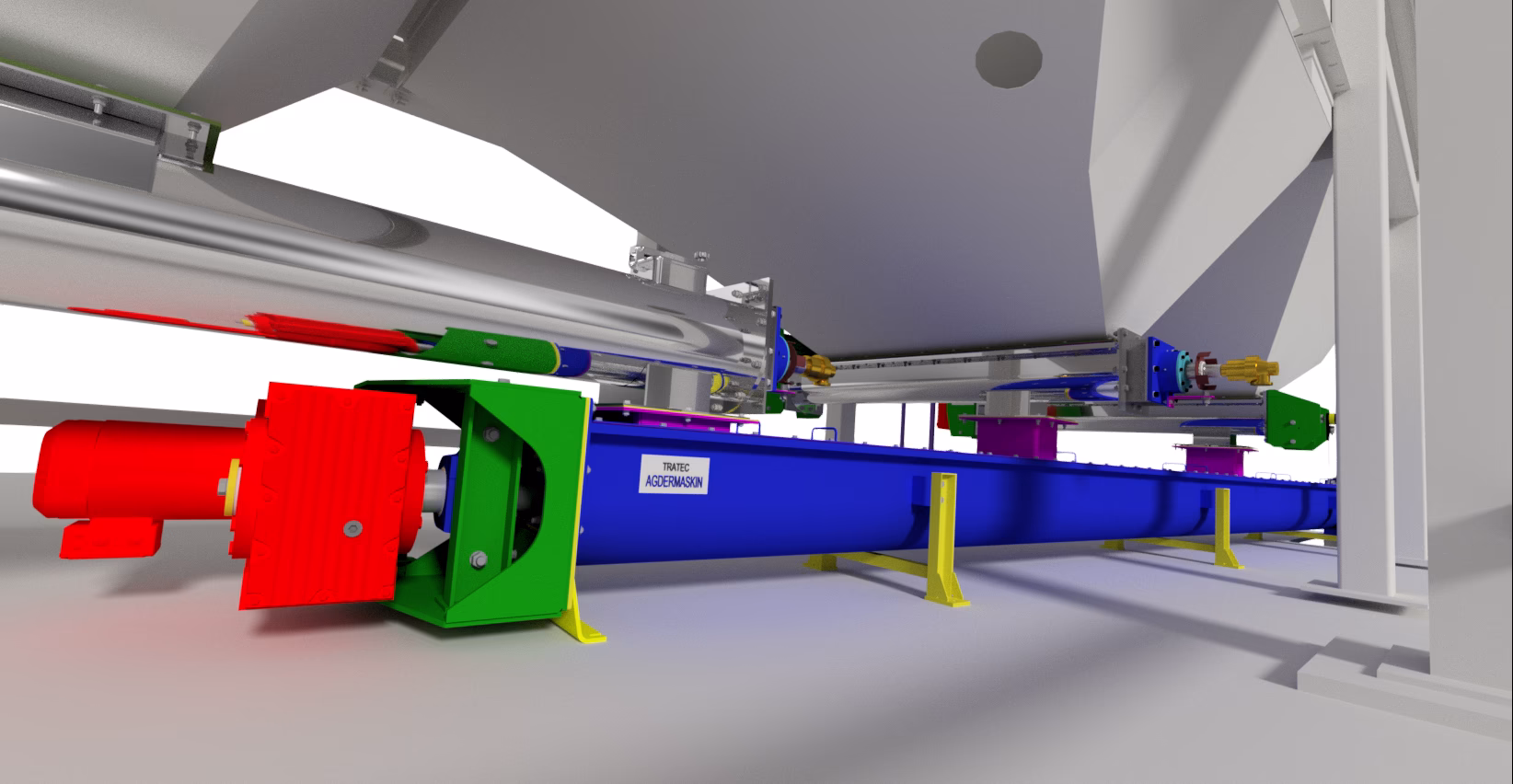 Skruemotor er optimalisert på samme måte. Størrelse og hastighet er beregnet i våre eget program, basert på mange års erfaring med forskjellige og vanskelige materialer, transportert i alle vinkler fra horisontal til vertikal.